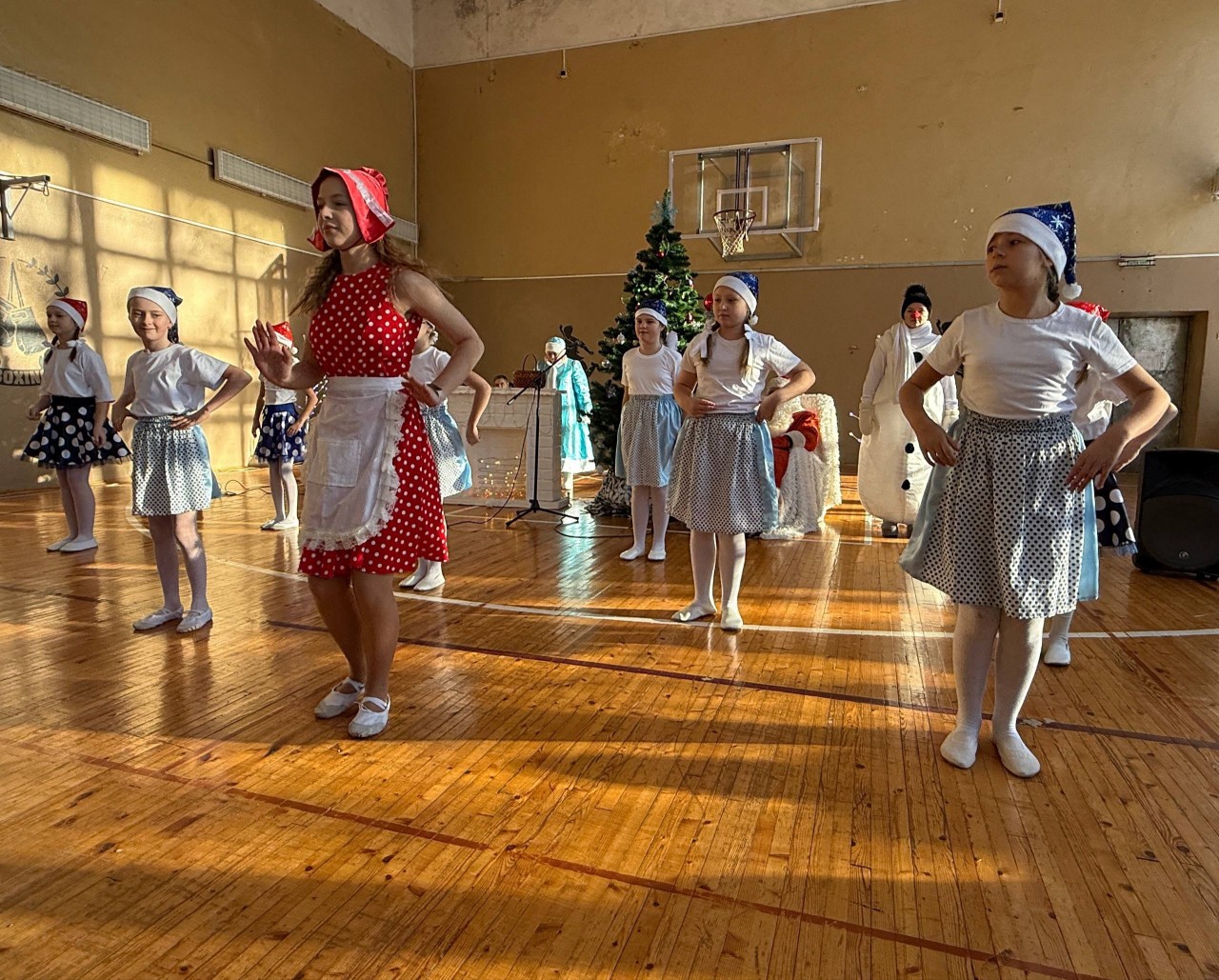 К нам в гости пришли не только Дед Мороз и Снегурочка, но и сказочные персонажи: Снеговик,Красная Шапочка,Волк,Баба-Яга,Кикимора и Мальвина, которые помогали создать незабываемую атмосферу.